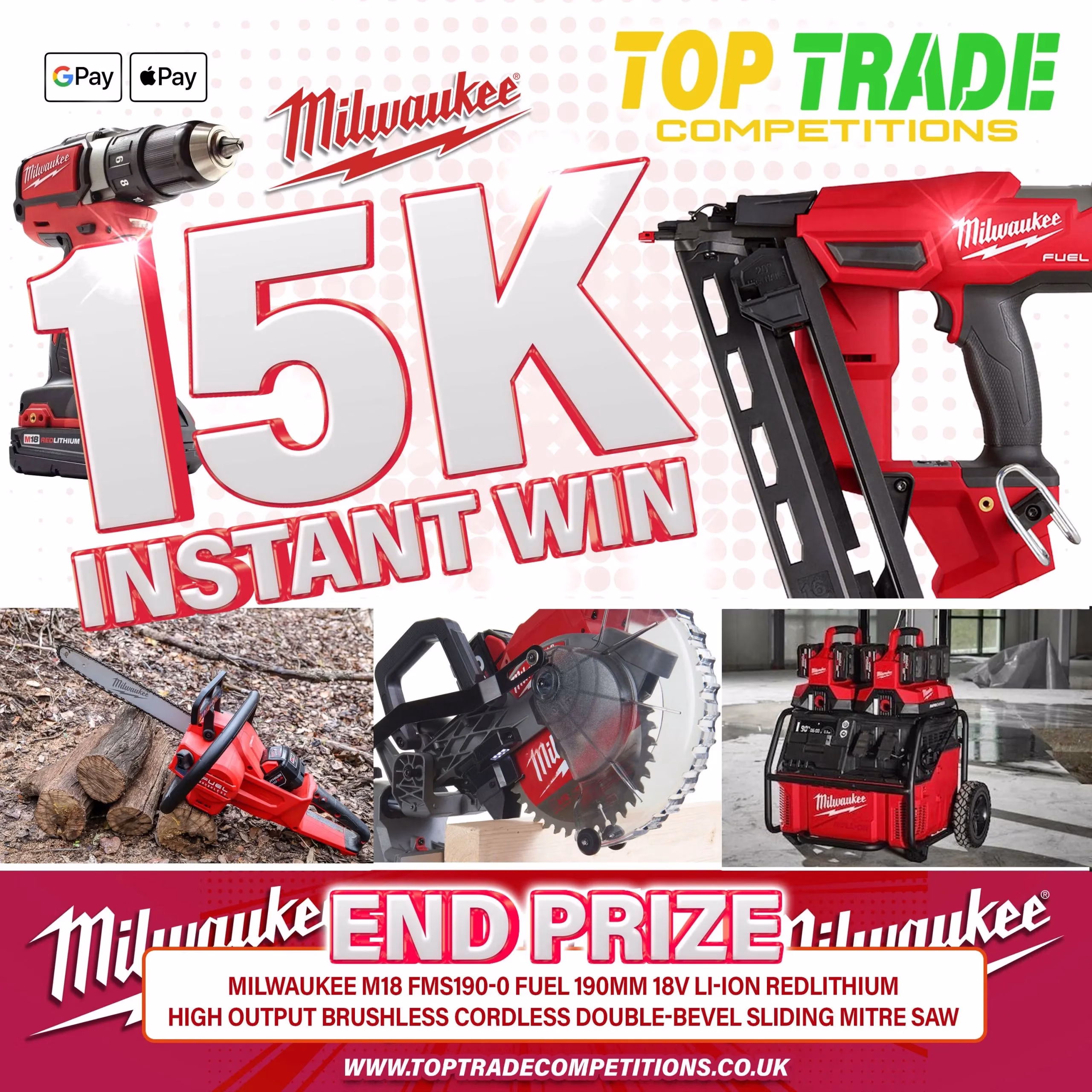 £15k Milwaukee Instant Win + 190mm Double Bevel Mitre Saw End Prize (Auto-Draw)
